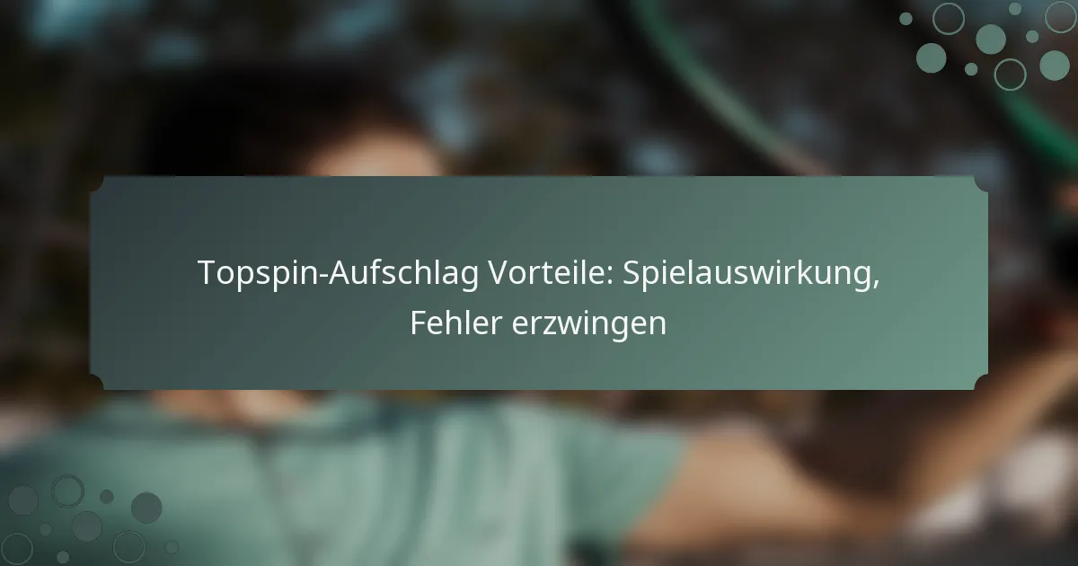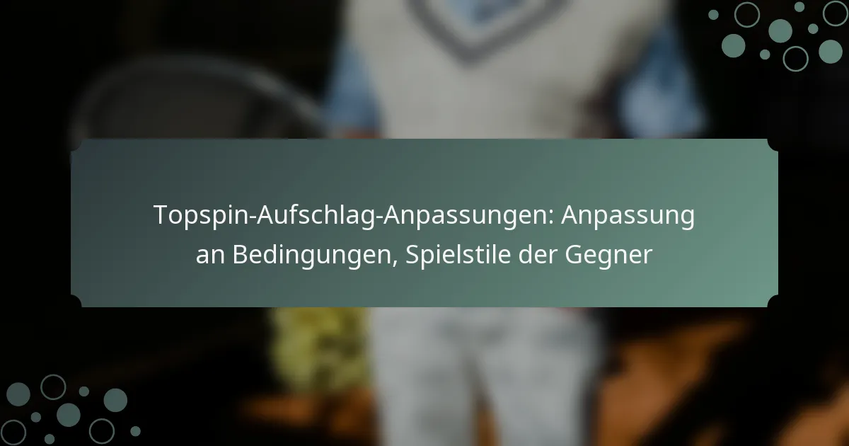 Das Beherrschen des Topspin-Serves erfordert ein scharfes Bewusstsein für verschiedene Faktoren wie Umweltbedingungen und Spielstile der Gegner. Durch notwendige Anpassungen basierend auf Platzoberflächen, Wetter und der Physis Ihres Gegners können Sie die Effektivität und Anpassungsfähigkeit Ihres Serves während eines Spiels verbessern. Das Verständnis dieser Elemente ist entscheidend, um die Leistung zu optimieren und die Kontrolle auf dem Platz zu behalten. Key sections in the article: Toggle Was sind die Schlüsselfaktoren, die Anpassungen des Topspin-Serves beeinflussen? Umweltbedingungen, die Topspin-Serves beeinflussen Spielstile der Gegner und deren Einfluss auf die Serve-Strategie Physische Eigenschaften des Spielers, die die Effektivität des Serves beeinflussen Spielsituation und…